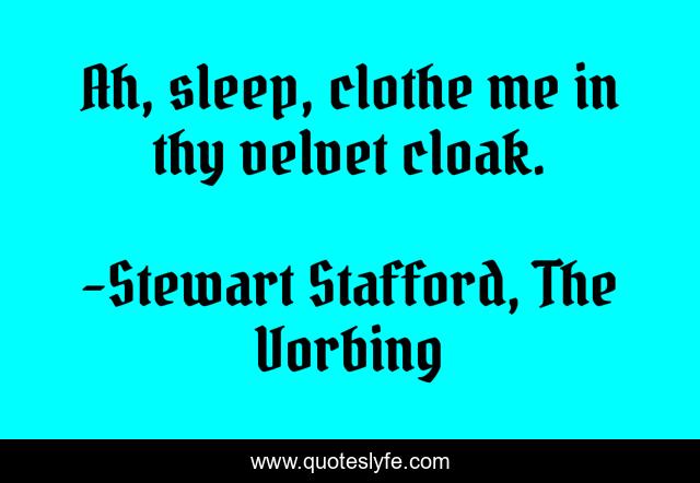 "Stewart Stafford, The Vorbing Quotes." Quoteslyfe.com, 2025. Fri. 05 Dec. 2025. <https://www.quoteslyfe.com/quote/Ah-sleep-clothe-me-in-thy-velvet-53861>.