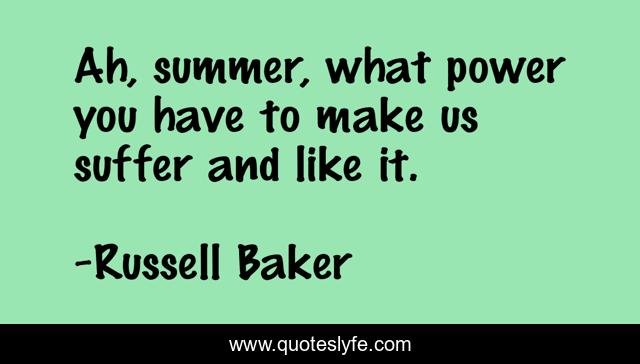 This page presents the quote "Ah, summer, what power you have to make us suffer and like it.". Author of this quote is Russell Baker. This quote is about summer, power,.