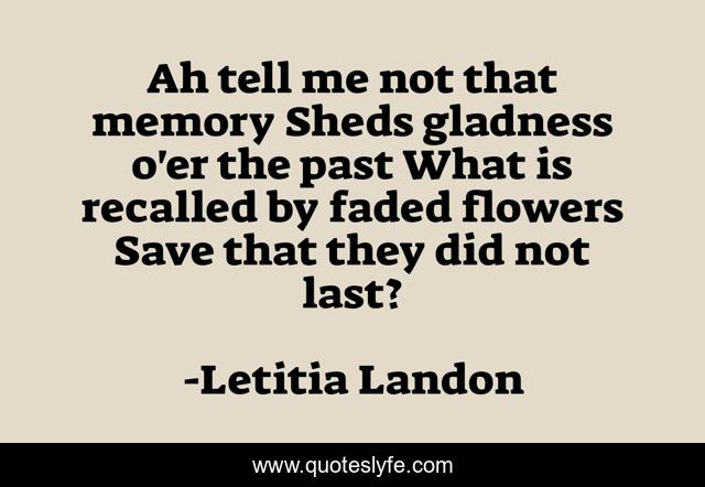 This page presents the quote "Ah tell me not that memory Sheds gladness o'er the past What is recalled by faded flowers Save that they did not last?". Author of this quote is Letitia Landon. .