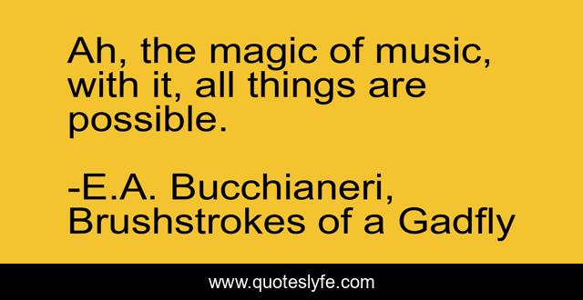 "E.A. Bucchianeri, Brushstrokes of a Gadfly Quotes." Quoteslyfe.com, 2025. Sat. 06 Dec. 2025. <https://www.quoteslyfe.com/quote/Ah-the-magic-of-music-with-it-78832>.