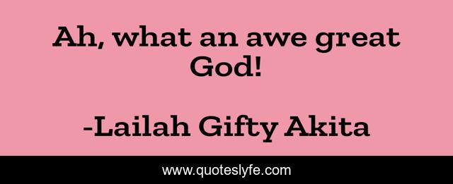 This page presents the quote "Ah, what an awe great God!". Author of this quote is Lailah Gifty Akita. This quote is about faith, great, christian, god, ah, hope,.