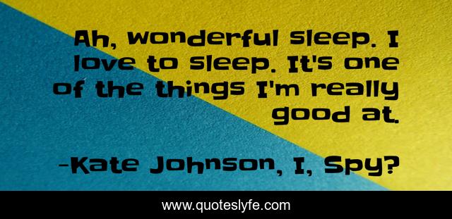 "Kate Johnson, I, Spy? Quotes." Quoteslyfe.com, 2025. Sat. 06 Dec. 2025. <https://www.quoteslyfe.com/quote/Ah-wonderful-sleep-I-love-to-sleep-199191>.