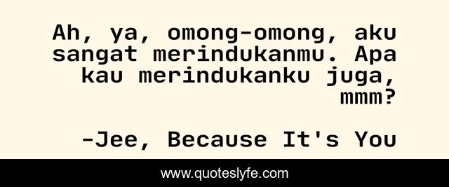 "Jee, Because It's You Quotes." Quoteslyfe.com, 2025. Sat. 06 Dec. 2025. <https://www.quoteslyfe.com/quote/Ah-ya-omong-omong-aku-sangat-merindukanmu-18865>.