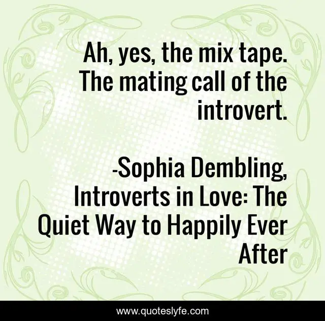 "Sophia Dembling, Introverts in Love: The Quiet Way to Happily Ever After Quotes." Quoteslyfe.com, 2025. Sun. 07 Dec. 2025. <https://www.quoteslyfe.com/quote/Ah-yes-the-mix-tape-The-mating-79522>.