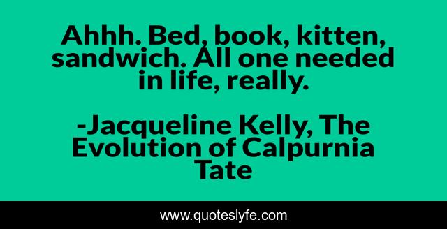 "Jacqueline Kelly, The Evolution of Calpurnia Tate Quotes." Quoteslyfe.com, 2025. Sat. 06 Dec. 2025. <https://www.quoteslyfe.com/quote/Ahhh-Bed-book-kitten-sandwich-All-one-16079>.