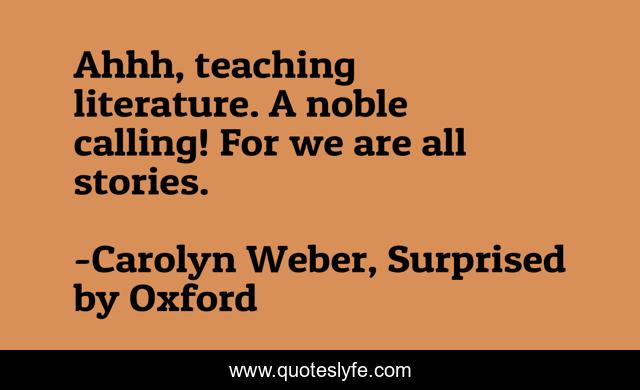 "Carolyn Weber, Surprised by Oxford Quotes." Quoteslyfe.com, 2025. Sat. 06 Dec. 2025. <https://www.quoteslyfe.com/quote/Ahhh-teaching-literature-A-noble-calling-For-112197>.