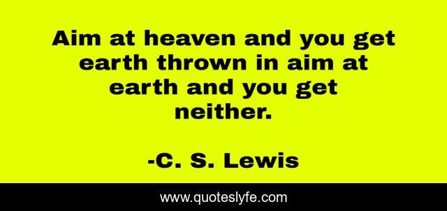 "C. S. Lewis Quotes." Quoteslyfe.com, 2025. Mon. 08 Dec. 2025. <https://www.quoteslyfe.com/quote/Aim-at-heaven-and-you-get-earth-266621>.