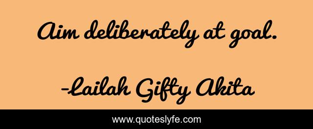 This page presents the quote "Aim deliberately at goal.". Author of this quote is Lailah Gifty Akita. This quote is about self-determination, purpose, inspirational, enthusiasm, goal-setting, goals,.