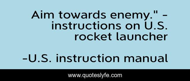 This page presents the quote "Aim towards enemy." - instructions on U.S. rocket launcher". Author of this quote is U.S. instruction manual. This quote is about military, humour,.