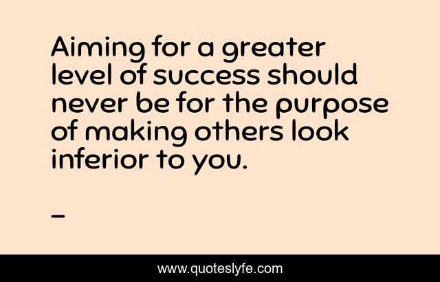 This page presents the quote "Aiming for a greater level of success should never be for the purpose of making others look inferior to you.". Author of this quote is . This quote is about don-t-belittle-others, edmond-mbiaka, aiming-for-success, aiming-higher, don-t-make-other-look-inferior, a-great-level-of-success, don-t-look-down-on-others,.