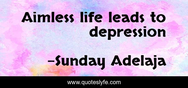 This page presents the quote "Aimless life leads to depression". Author of this quote is Sunday Adelaja. This quote is about life, aimless-life, depression, people,.