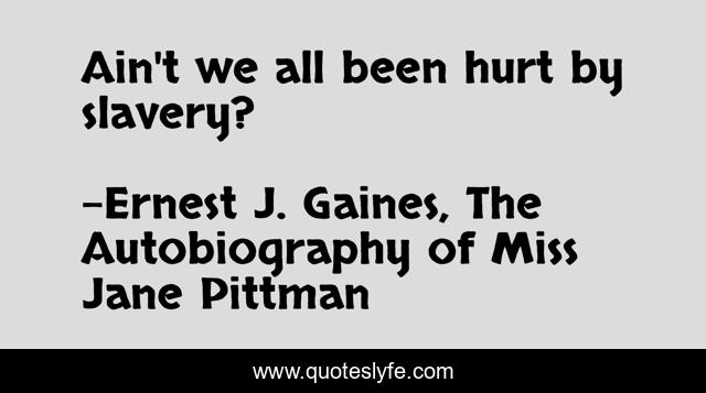 This page presents the quote "Ain't we all been hurt by slavery?". Author of this quote is Ernest J. Gaines, The Autobiography of Miss Jane Pittman. .