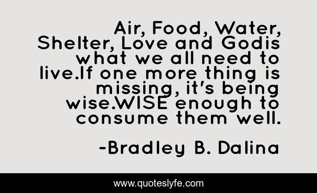 "Bradley B. Dalina Quotes." Quoteslyfe.com, 2025. Tue. 09 Dec. 2025. <https://www.quoteslyfe.com/quote/Air-Food-Water-Shelter-Love-and-Godis-105520>.