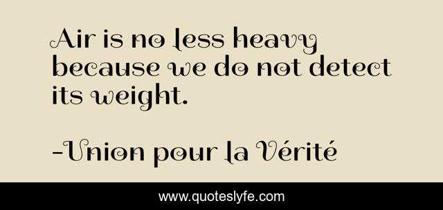 "Union pour la Vérité Quotes." Quoteslyfe.com, 2025. Fri. 05 Dec. 2025. <https://www.quoteslyfe.com/quote/Air-is-no-less-heavy-because-we-256995>.