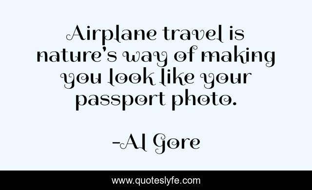 This page presents the quote "Airplane travel is nature's way of making you look like your passport photo.". Author of this quote is Al Gore. This quote is about travel, airplane,.