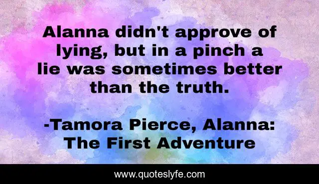 This page presents the quote "Alanna didn't approve of lying, but in a pinch a lie was sometimes better than the truth.". Author of this quote is Tamora Pierce, Alanna: The First Adventure. This quote is about lying, truth,.