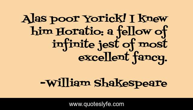 This page presents the quote "Alas poor Yorick! I knew him Horatio: a fellow of infinite jest of most excellent fancy.". Author of this quote is William Shakespeare. .