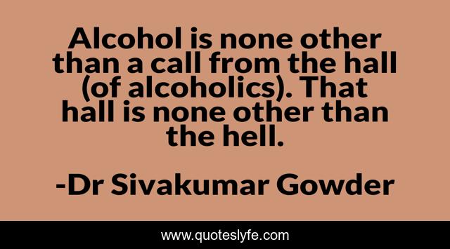 This page presents the quote "Alcohol is none other than a call from the hall (of alcoholics). That hall is none other than the hell.". Author of this quote is Dr Sivakumar Gowder. .
