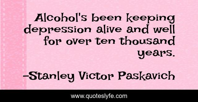 This page presents the quote "Alcohol's been keeping depression alive and well for over ten thousand years.". Author of this quote is Stanley Victor Paskavich. This quote is about alcohol, depression, alcoholism,.