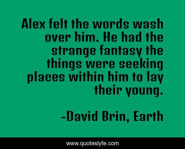 This page presents the quote "Alex felt the words wash over him. He had the strange fantasy the things were seeking places within him to lay their young.". Author of this quote is David Brin, Earth. This quote is about language, words,.