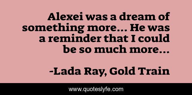This page presents the quote "Alexei was a dream of something more... He was a reminder that I could be so much more...". Author of this quote is Lada Ray, Gold Train. This quote is about dream, soulmate, love, affection,.