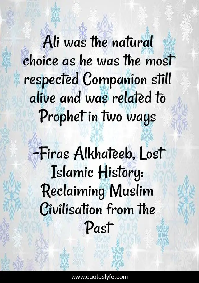 "Firas Alkhateeb, Lost Islamic History: Reclaiming Muslim Civilisation from the Past Quotes." Quoteslyfe.com, 2025. Sat. 06 Dec. 2025. <https://www.quoteslyfe.com/quote/Ali-was-the-natural-choice-as-he-70737>.