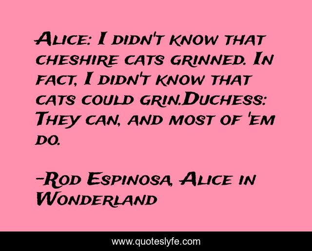 "Rod Espinosa, Alice in Wonderland Quotes." Quoteslyfe.com, 2025. Fri. 05 Dec. 2025. <https://www.quoteslyfe.com/quote/Alice-I-didn-t-know-that-cheshire-222812>.