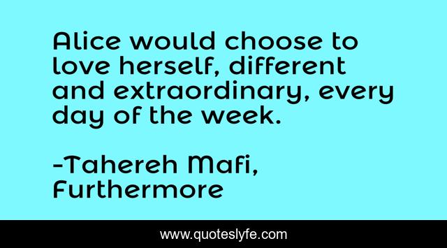 "Tahereh Mafi, Furthermore Quotes." Quoteslyfe.com, 2025. Sun. 07 Dec. 2025. <https://www.quoteslyfe.com/quote/Alice-would-choose-to-love-herself-different-186624>.