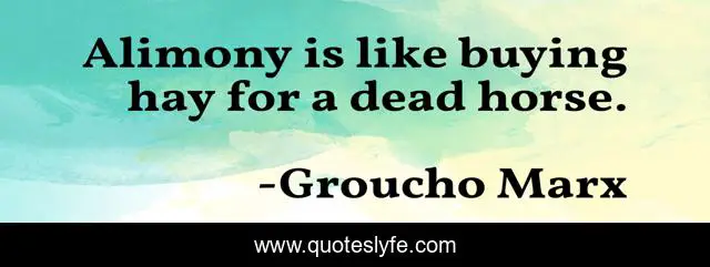This page presents the quote "Alimony is like buying hay for a dead horse.". Author of this quote is Groucho Marx. This quote is about horse, like, dead,.
