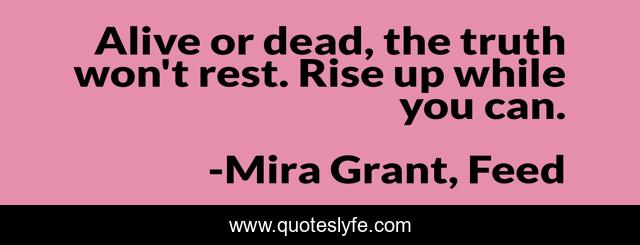 "Mira Grant, Feed Quotes." Quoteslyfe.com, 2025. Mon. 08 Dec. 2025. <https://www.quoteslyfe.com/quote/Alive-or-dead-the-truth-won-t-9187>.