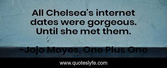 This page presents the quote "All Chelsea's internet dates were gorgeous. Until she met them.". Author of this quote is Jojo Moyes, One Plus One. .