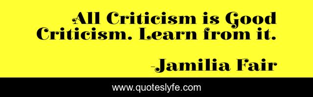 "Jamilia Fair Quotes." Quoteslyfe.com, 2025. Fri. 05 Dec. 2025. <https://www.quoteslyfe.com/quote/All-Criticism-is-Good-Criticism-Learn-from-235982>.