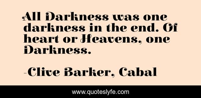 This page presents the quote "All Darkness was one darkness in the end. Of heart or Heavens, one Darkness.". Author of this quote is Clive Barker, Cabal. .