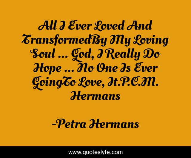 This page presents the quote "All I Ever Loved And TransformedBy My Loving Soul ... God, I Really Do Hope ... No One Is Ever GoingTo Love, It.P.C.M. Hermans". Author of this quote is Petra Hermans. .