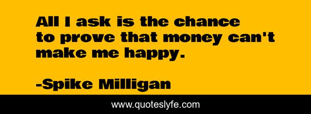 This page presents the quote "All I ask is the chance to prove that money can't make me happy.". Author of this quote is Spike Milligan. This quote is about me, money, happy,.