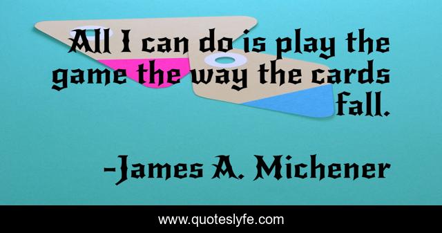 This page presents the quote "All I can do is play the game the way the cards fall.". Author of this quote is James A. Michener. .