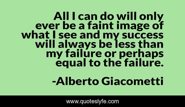 This page presents the quote "All I can do will only ever be a faint image of what I see and my success will always be less than my failure or perhaps equal to the failure.". Author of this quote is Alberto Giacometti. This quote is about see, success, i can,.