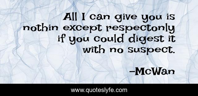 This page presents the quote "All I can give you is nothin except respectonly if you could digest it with no suspect.". Author of this quote is McWan. .