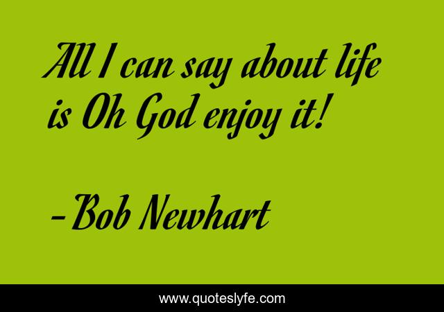 This page presents the quote "All I can say about life is Oh God enjoy it!". Author of this quote is Bob Newhart. .