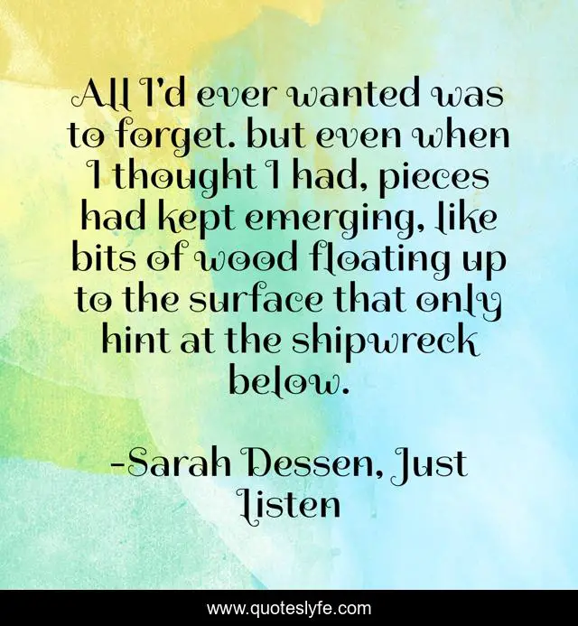 This page presents the quote "All I'd ever wanted was to forget. but even when I thought I had, pieces had kept emerging, like bits of wood floating up to the surface that only hint at the shipwreck below.". Author of this quote is Sarah Dessen, Just Listen. .