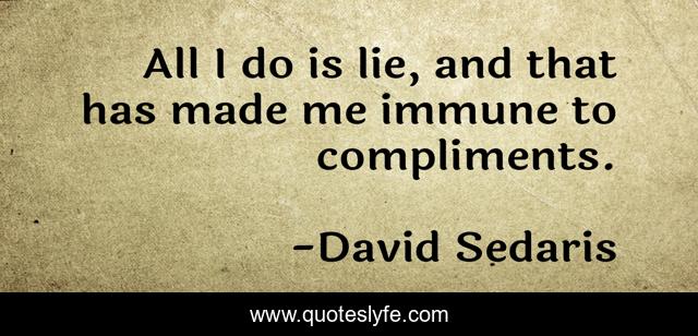 This page presents the quote "All I do is lie, and that has made me immune to compliments.". Author of this quote is David Sedaris. This quote is about humor, truth,.