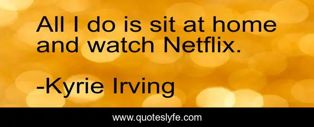This page presents the quote "All I do is sit at home and watch Netflix.". Author of this quote is Kyrie Irving. This quote is about netflix, watch, sit,.