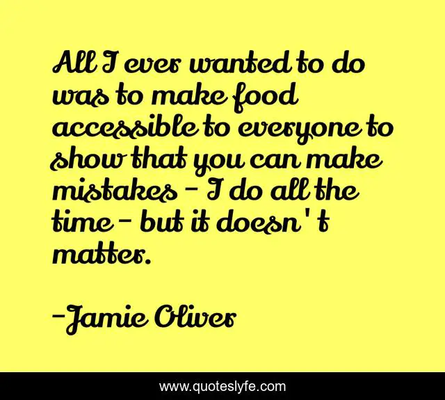 This page presents the quote "All I ever wanted to do was to make food accessible to everyone to show that you can make mistakes - I do all the time - but it doesn't matter.". Author of this quote is Jamie Oliver. This quote is about mistakes, time,.