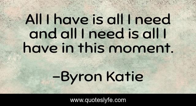 This page presents the quote "All I have is all I need and all I need is all I have in this moment.". Author of this quote is Byron Katie. This quote is about enthusiasm, inspirational, self-help,.