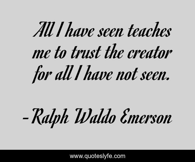 This page presents the quote "All I have seen teaches me to trust the creator for all I have not seen.". Author of this quote is Ralph Waldo Emerson. This quote is about me, seen, creator,.