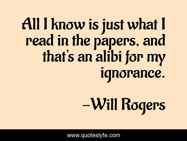 This page presents the quote "All I know is just what I read in the papers, and that's an alibi for my ignorance.". Author of this quote is Will Rogers. This quote is about funny, comedy, humor, media,.