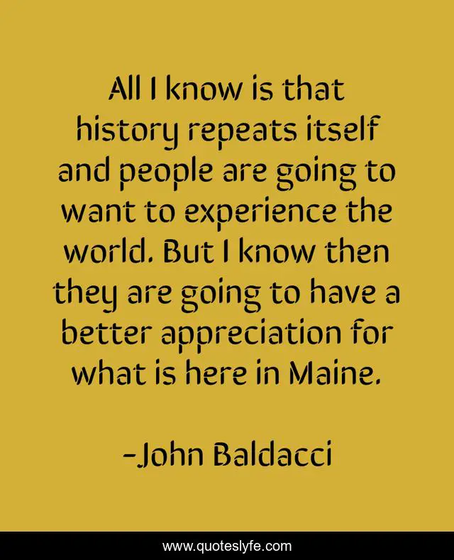 This page presents the quote "All I know is that history repeats itself and people are going to want to experience the world. But I know then they are going to have a better appreciation for what is here in Maine.". Author of this quote is John Baldacci. This quote is about appreciation, experience,.