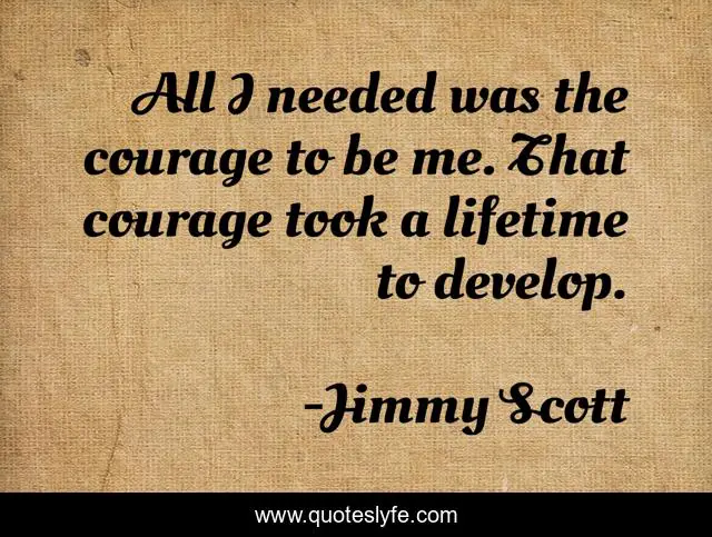 This page presents the quote "All I needed was the courage to be me. That courage took a lifetime to develop.". Author of this quote is Jimmy Scott. This quote is about me, lifetime, took,.