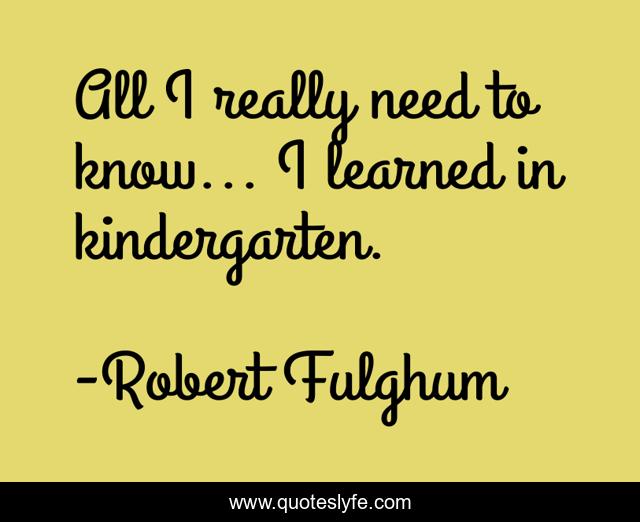This page presents the quote "All I really need to know... I learned in kindergarten.". Author of this quote is Robert Fulghum. This quote is about need, kindergarten,.