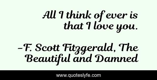 This page presents the quote "All I think of ever is that I love you.". Author of this quote is F. Scott Fitzgerald, The Beautiful and Damned. This quote is about love, sweet, affection, ever, think, gloria,.